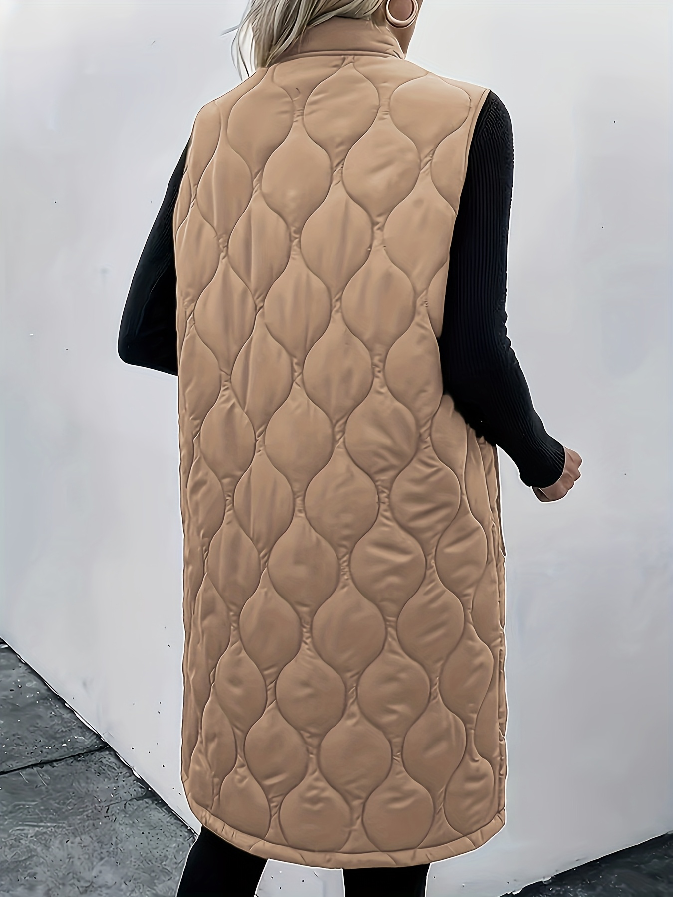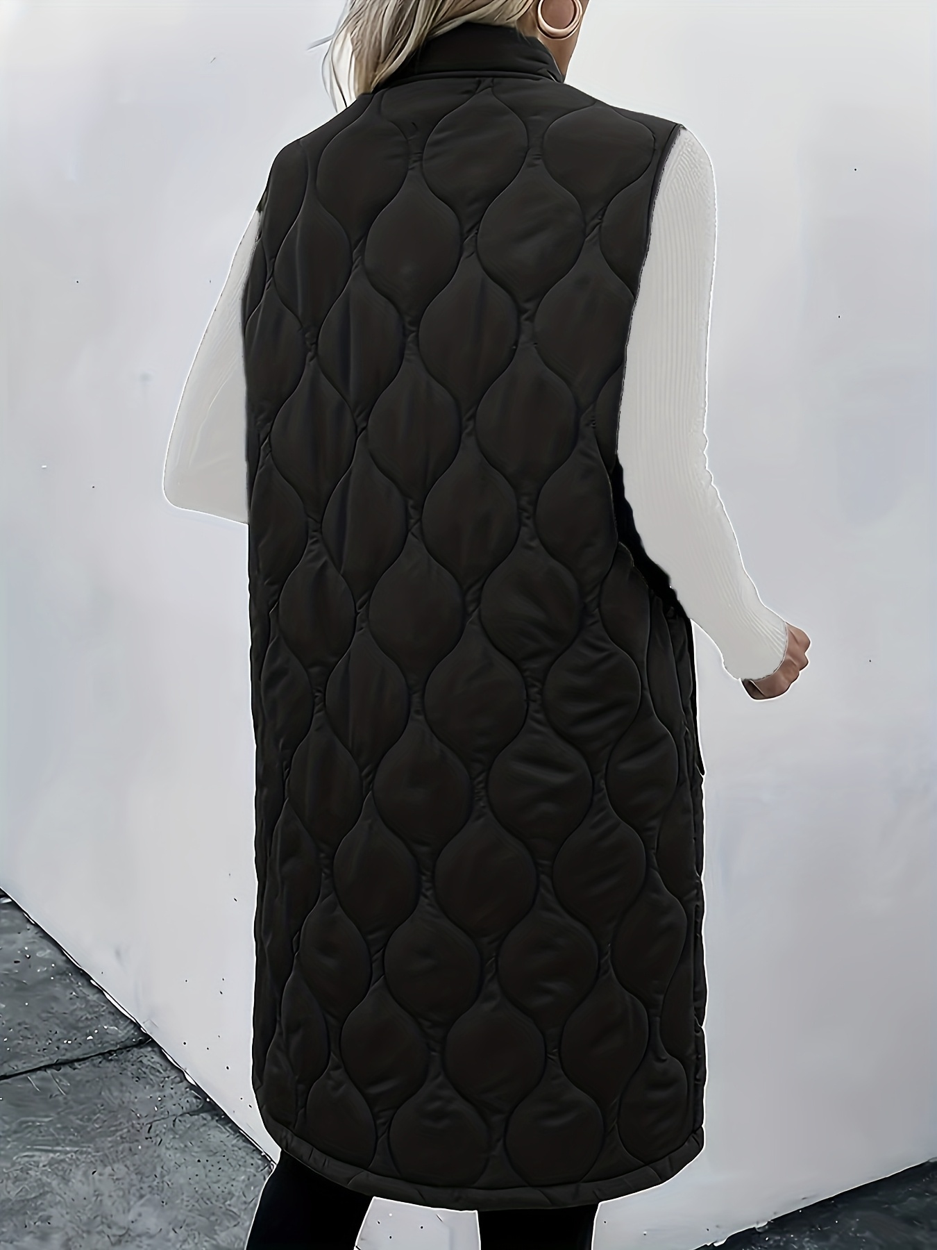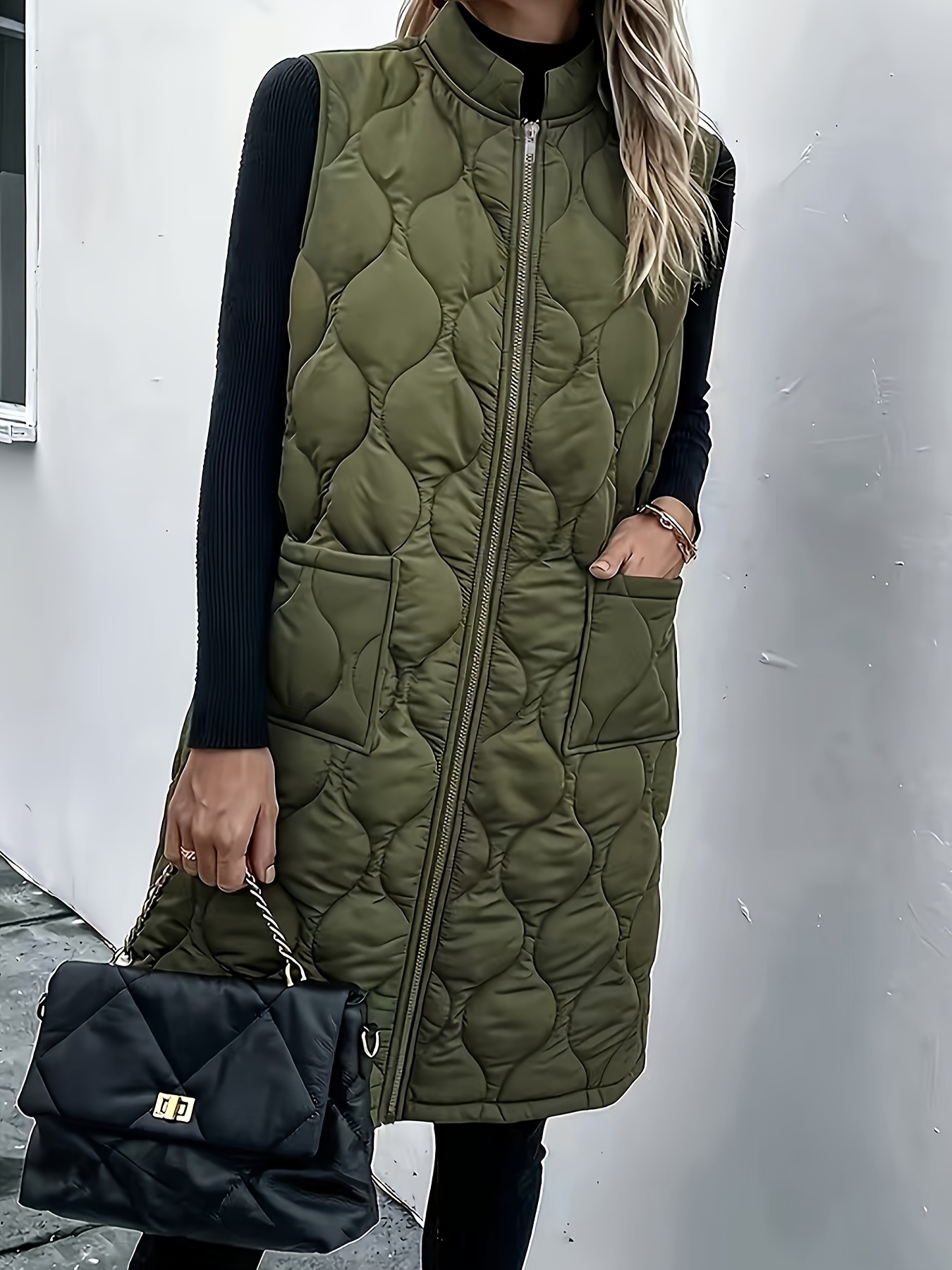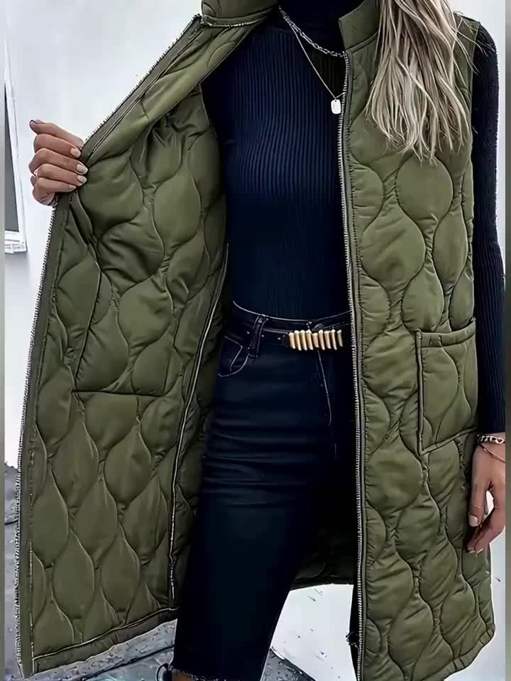 Chic Plus Size Sleeveless Vest - Casual Zip-Up, Warm Puffer Jacket for Women, Solid Color with Stand Collar