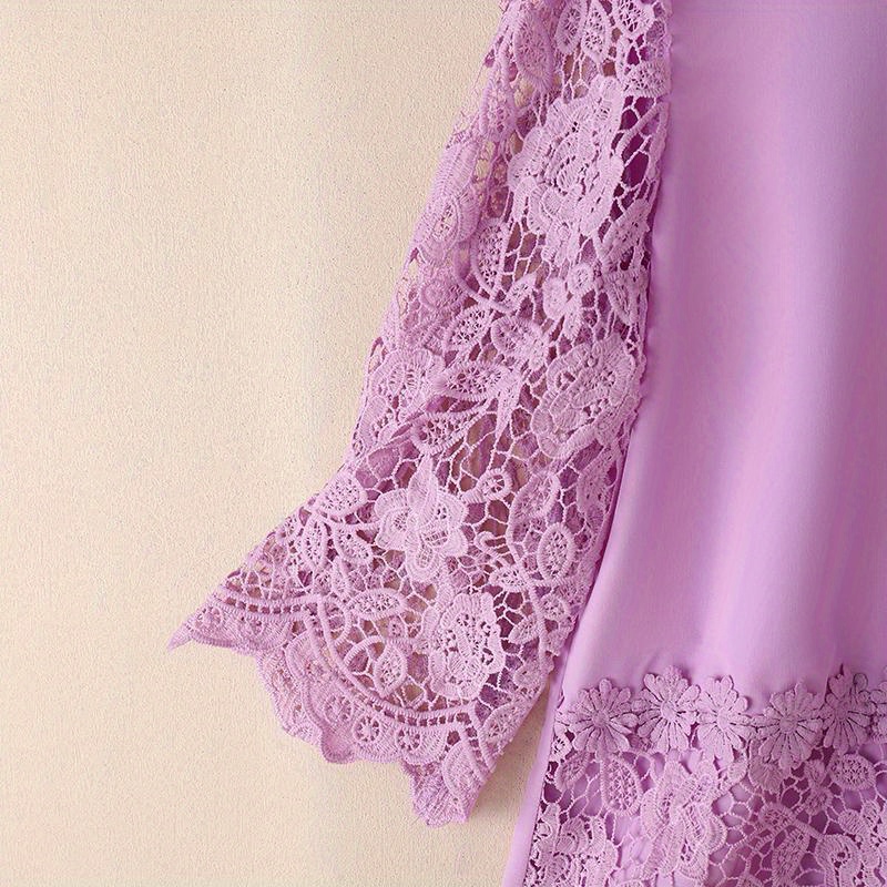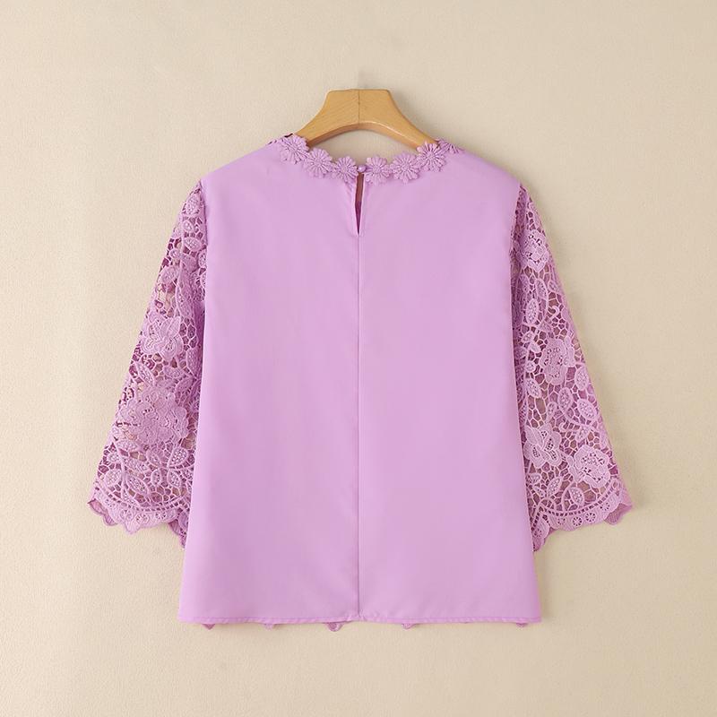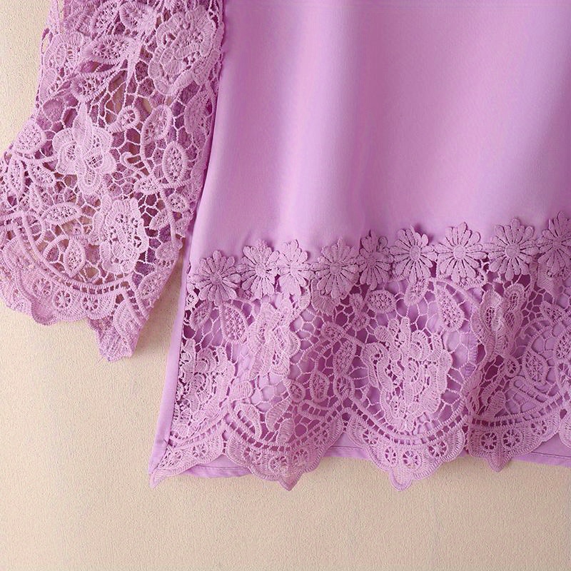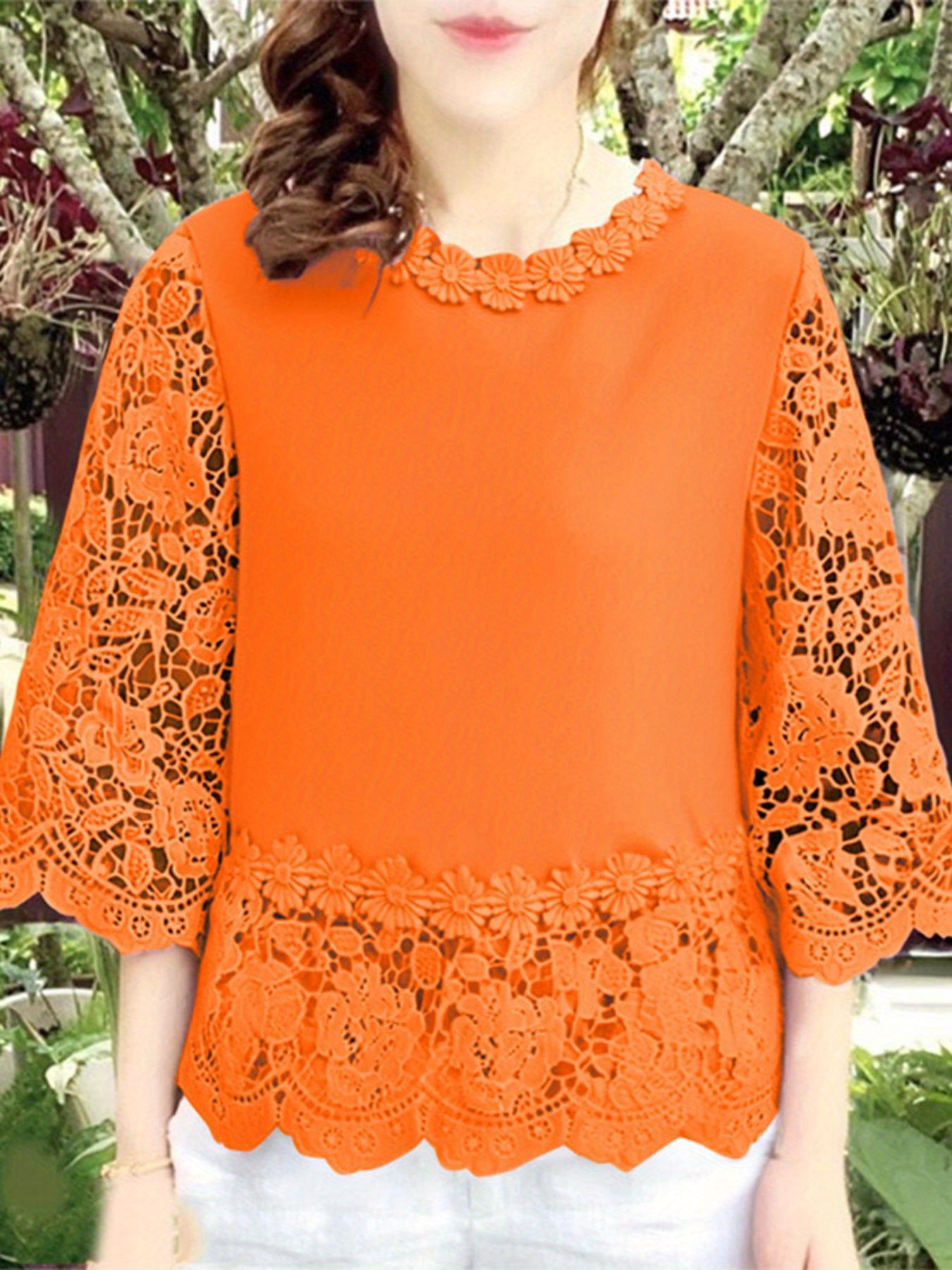 [Elegant Oversized Blouse] Plus Size, ZANZEA Women's Plus Size Elegant Oversized Blouse - Lightweight Short Sleeve-Like 3/4 Sleeve Crew Neck Shirt, Wrinkle-Resistant White & Colors, Structured Collar, Machine Washable - Office, Commuter & Casual Wear (No Stretch)