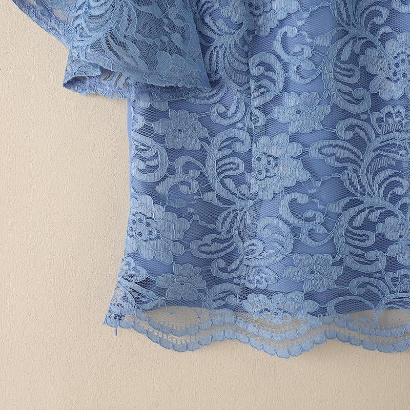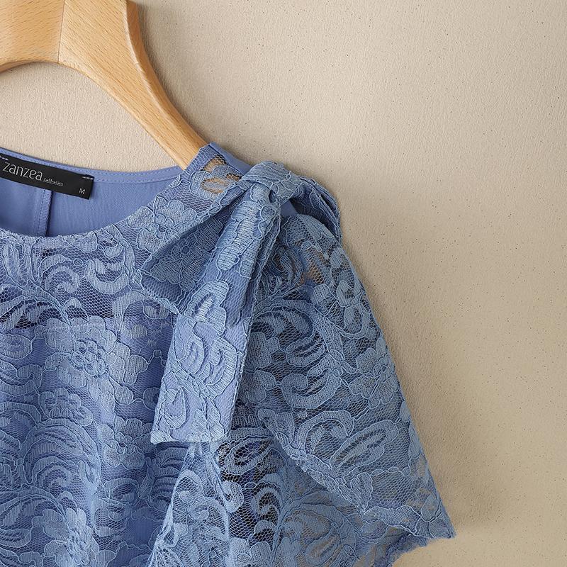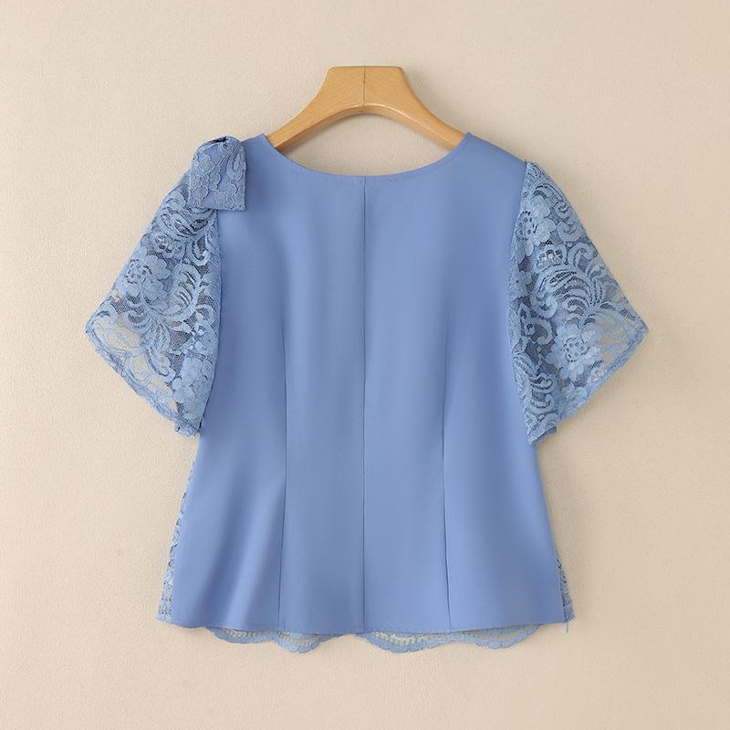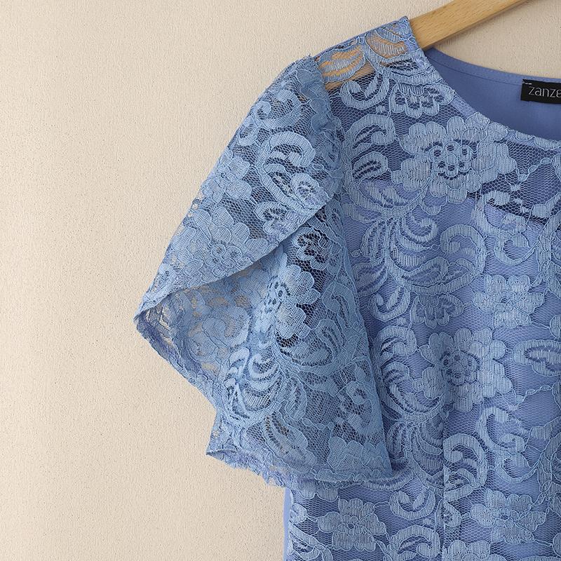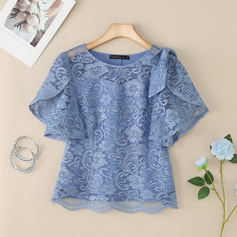 Plus Size, ZANZEA Women's Elegant Lace Patchwork Blouse - Short Sleeve Lace Collar & Sleeve Trim, Semi-Sheer Lace Panel Lightweight Summer Wedding Guest Dress Shirt, Plus Size Round Neck Blouse () for Party, Office, Casual - Machine