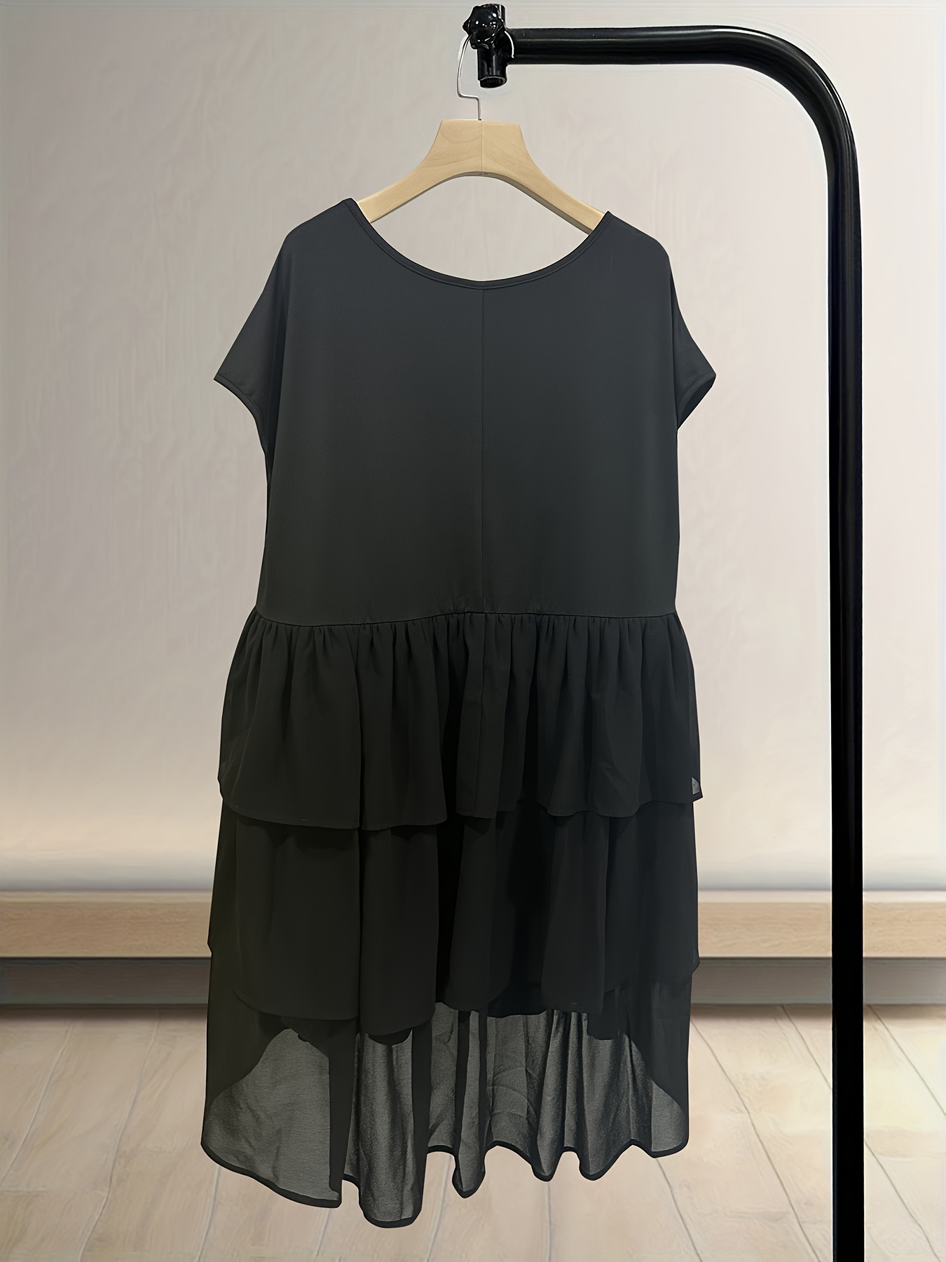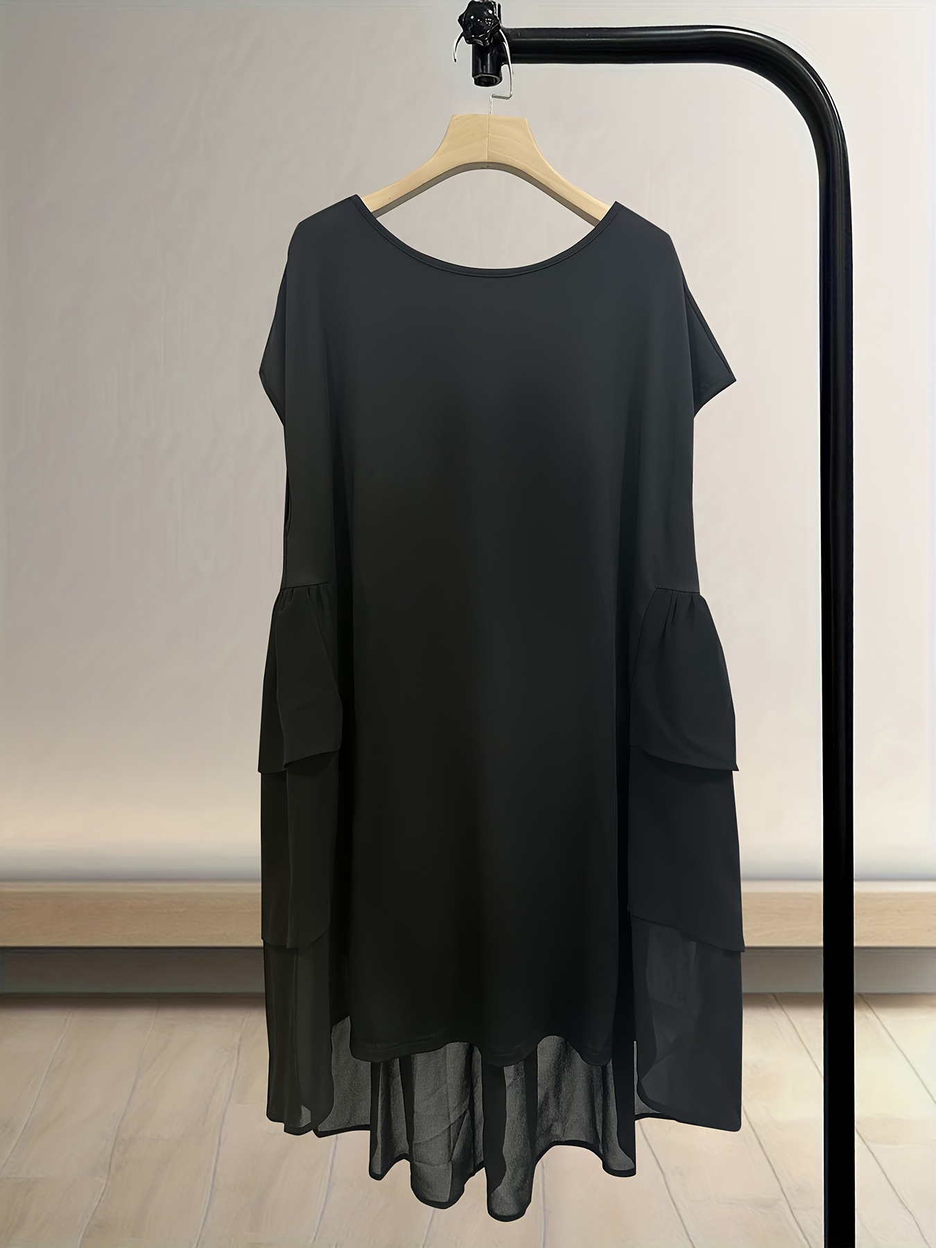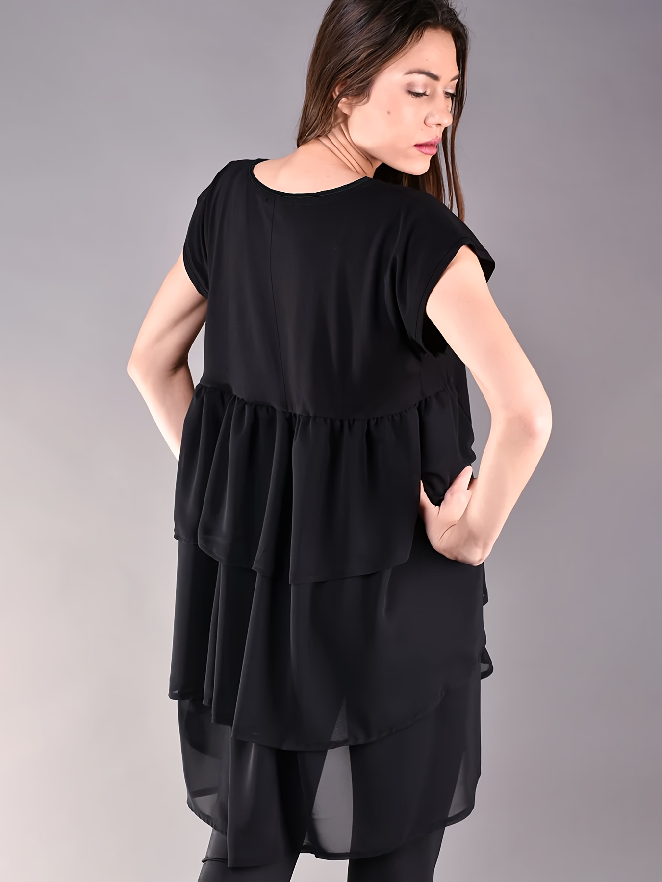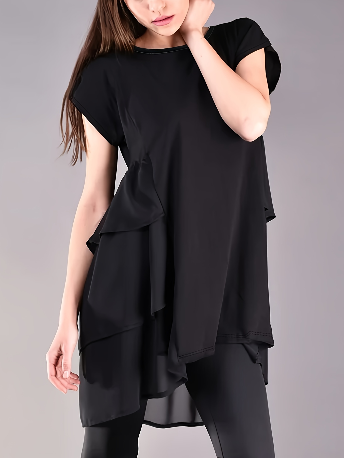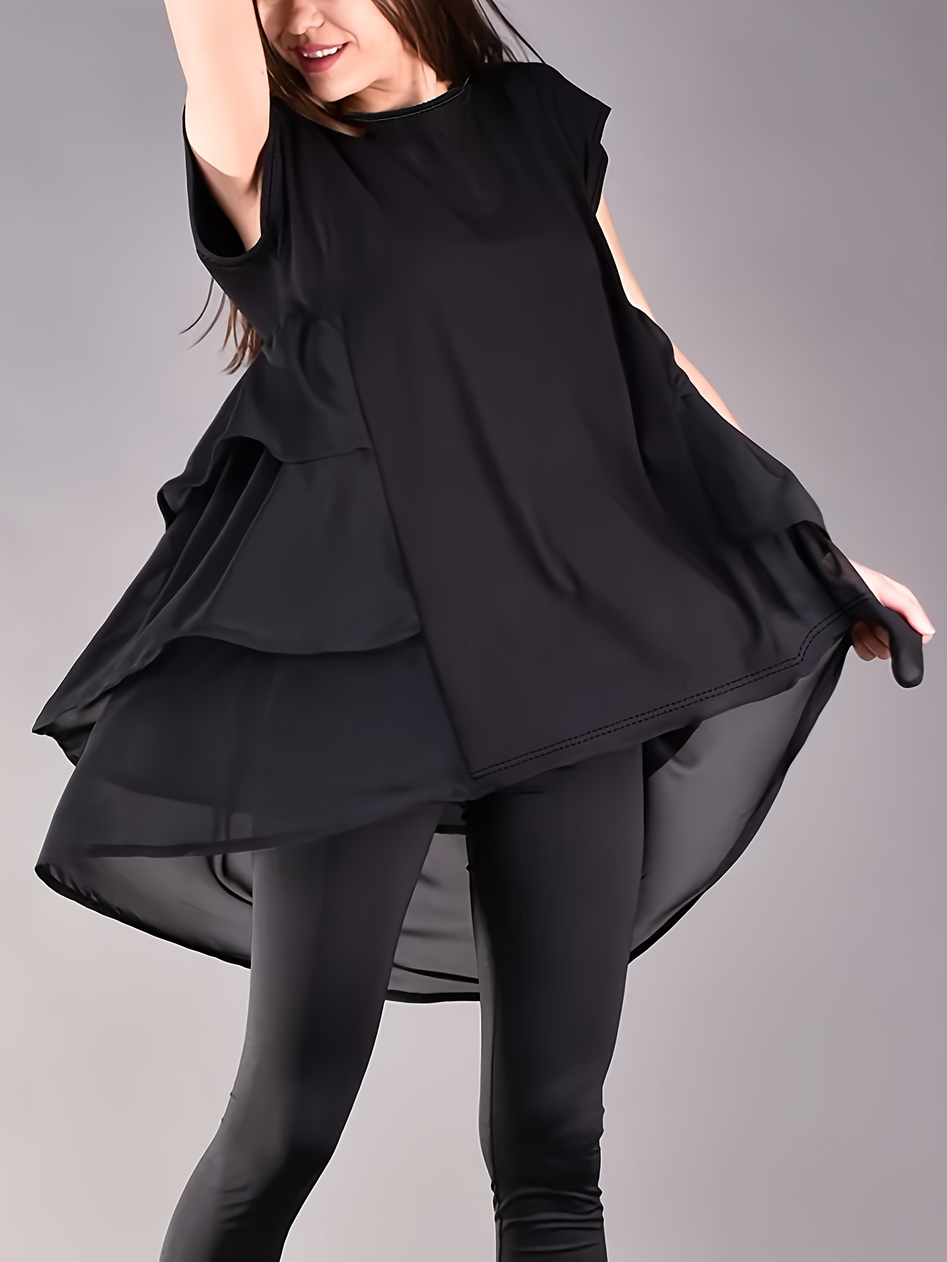 Plus Size, Black plus size waist-cinching asymmetrical luxury loose oversized ultra long Women's waist-cinching shirt