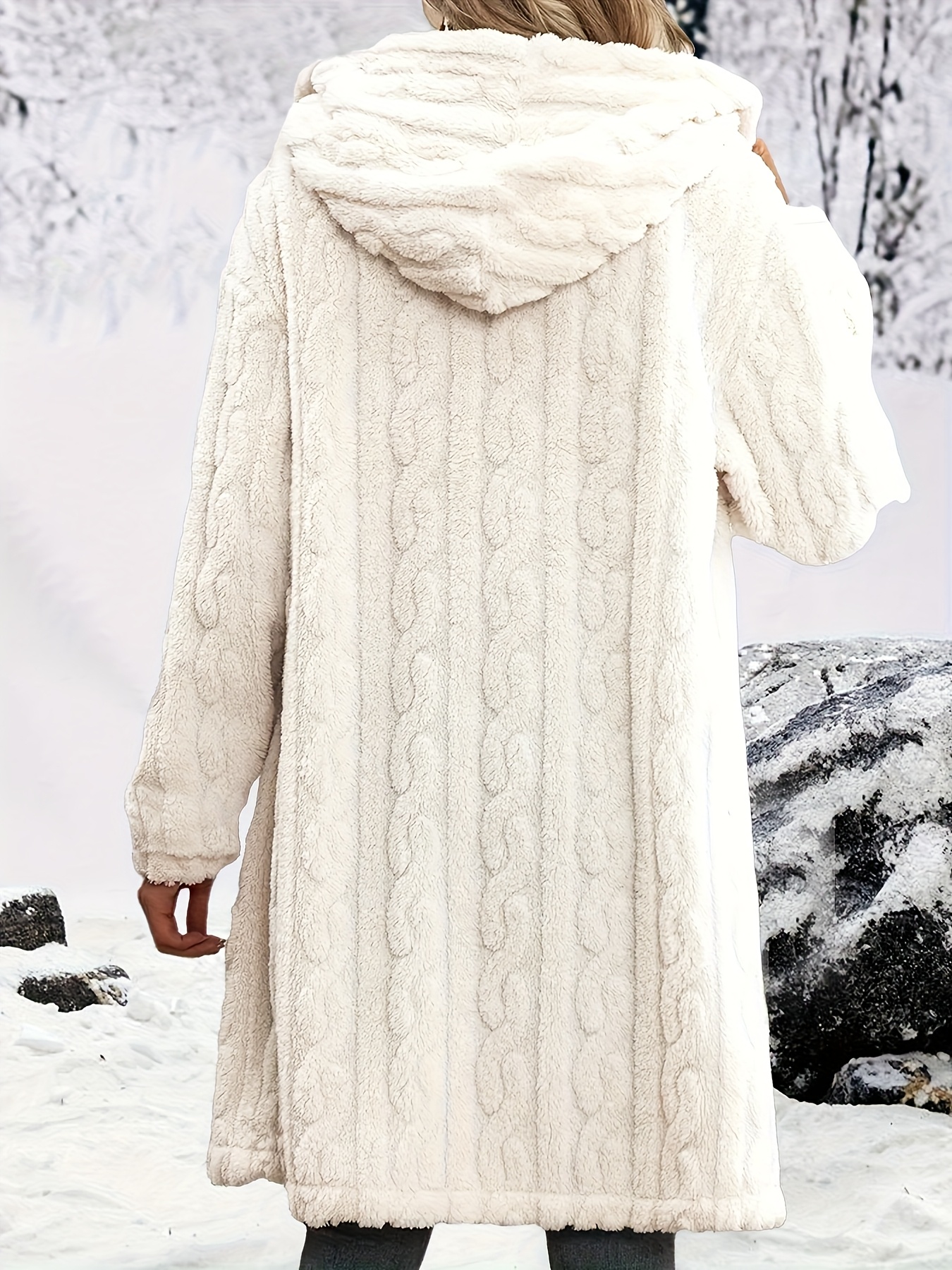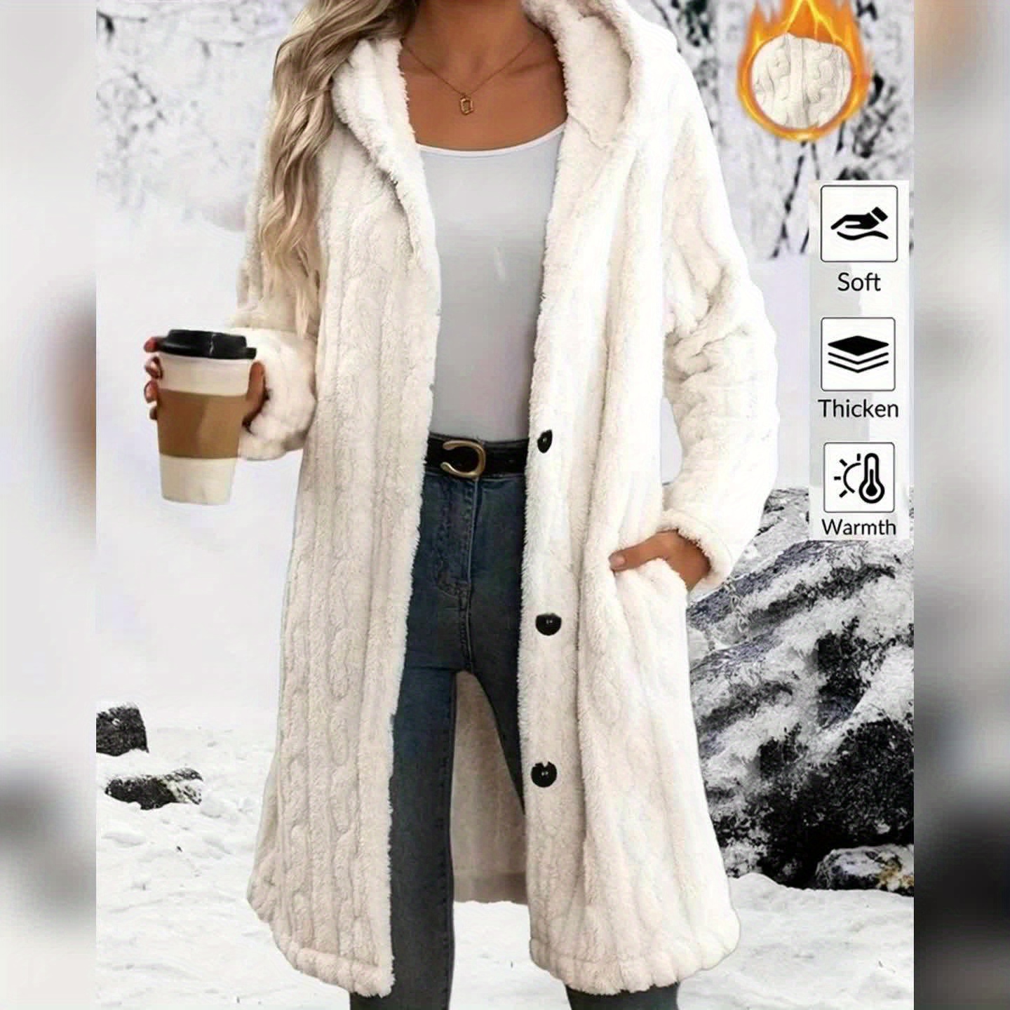 Plus Size - Women'S Elegant Fleece-Lined Hooded Coat - Long Winter Coat with Front Button Closure, Non-Stretchy Fabric, Chic Cold Weather Outerwear for Fall & Winter
