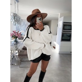 Plus Size - Women'S Elegant Sweater - Soft Pink Pullover Sweater for Fall/Winter, Cozy Everyday & Formal Outfits - Easy-Care Women'S Sweater for Women, Sweater, Casual Wear, Retro Style, Medium Stretch Fabric
