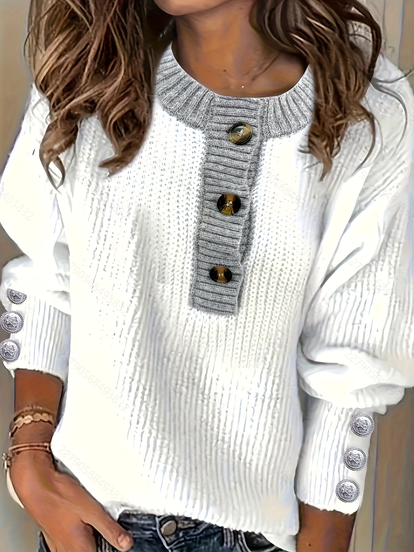 Plus Size - Women'S Oversized Sweater - Soft Pullover Sweater with Button Front Placket, Long Sleeve Round Neck Sweater for Fall/Winter