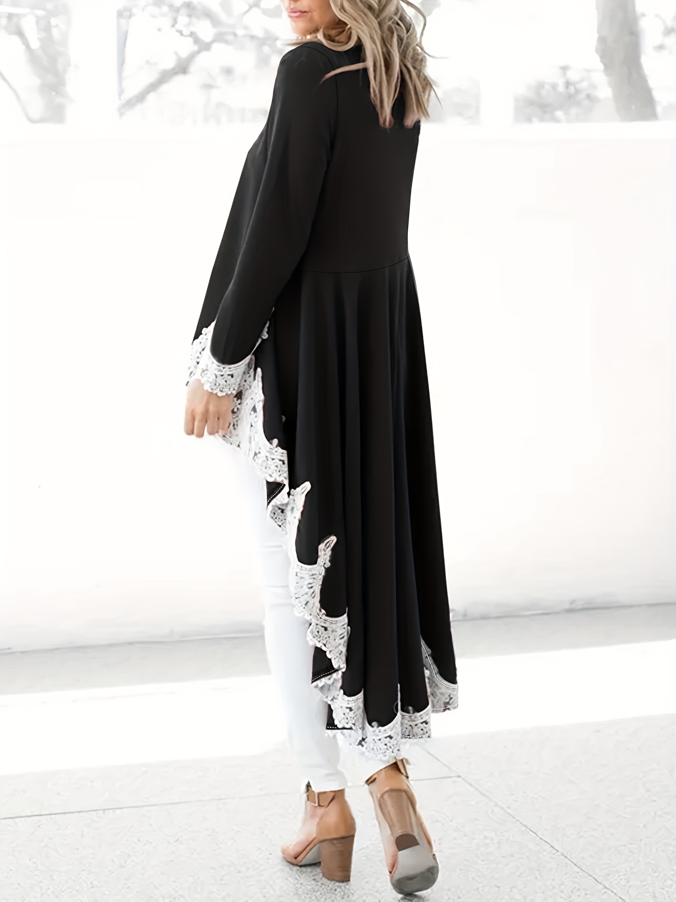 [Elegant Plus Size Dress] Elegant Plus Size Women's Long Sleeve Maxi Dress | Black & Lace Contrast, Flowy Formal/Everyday Dress with Round Neck, Machine Washable Non-See-Through Fabric for Parties, Office, Casual Outfits, Everyday Elegance, Sophisticated Style