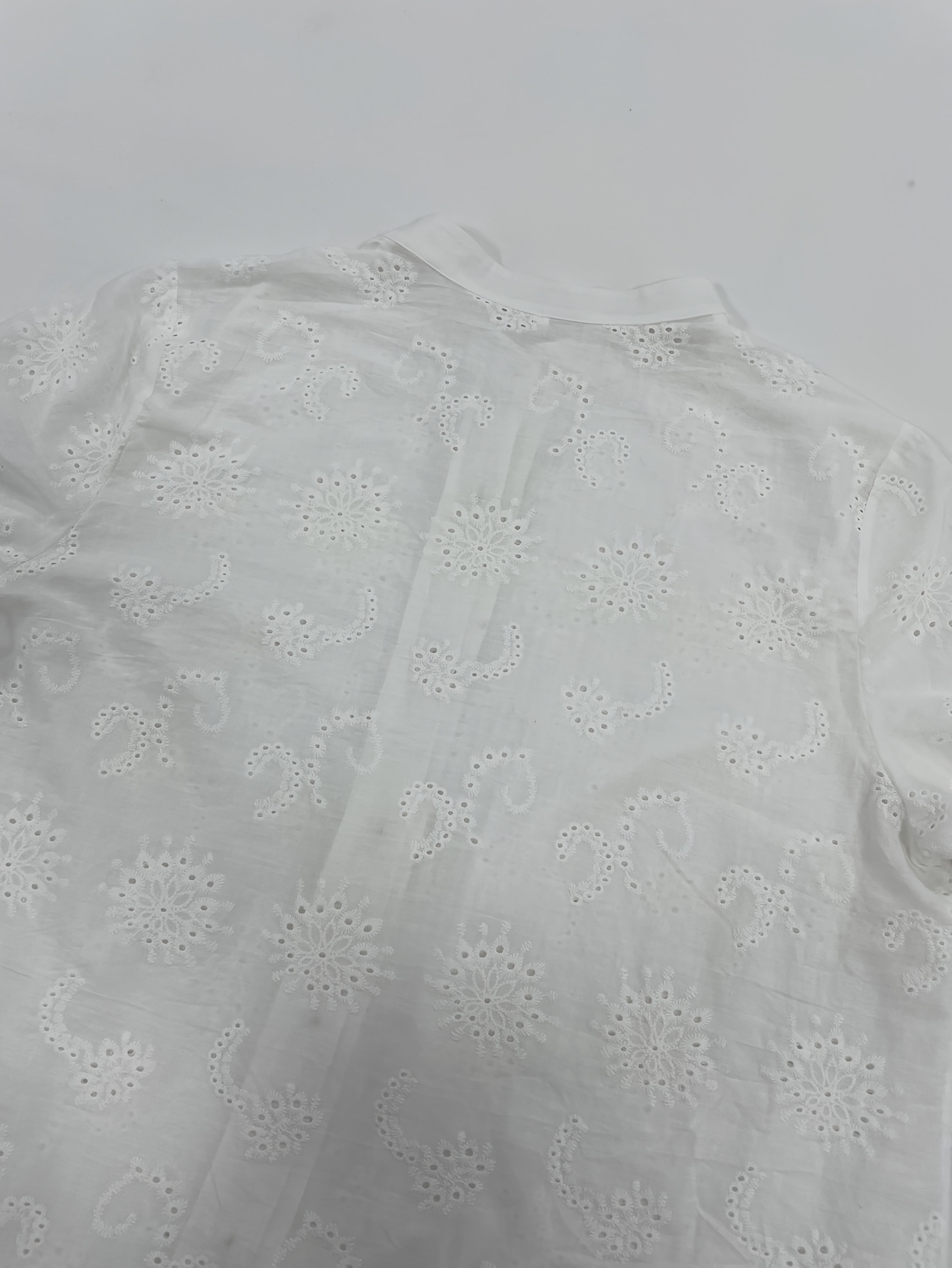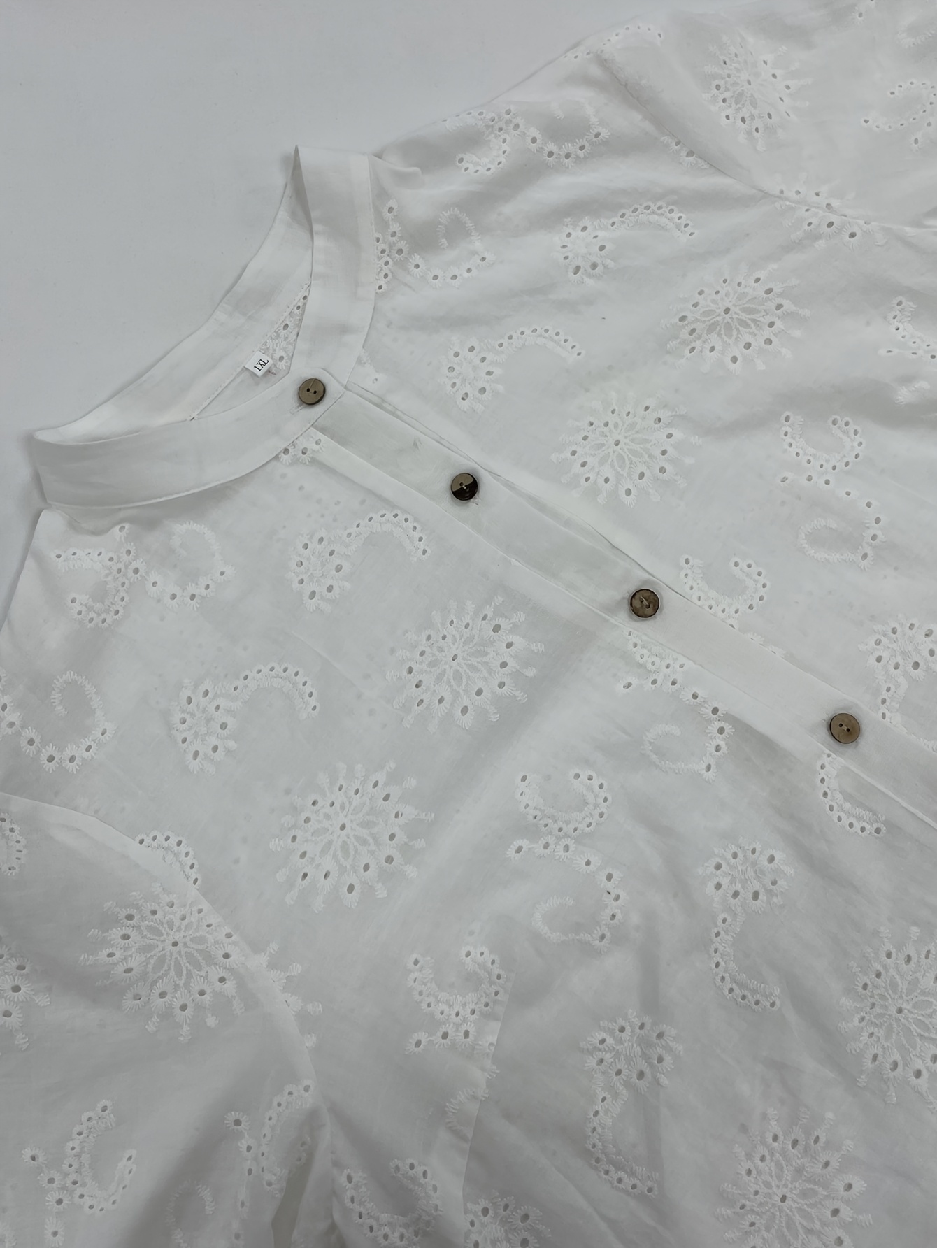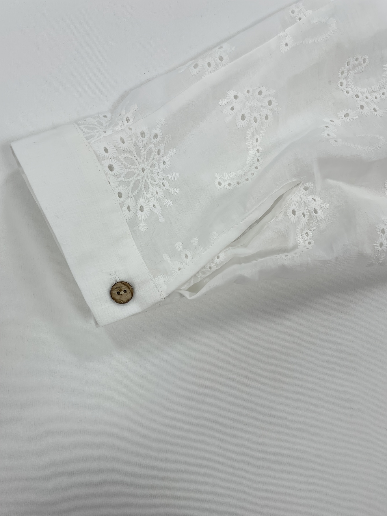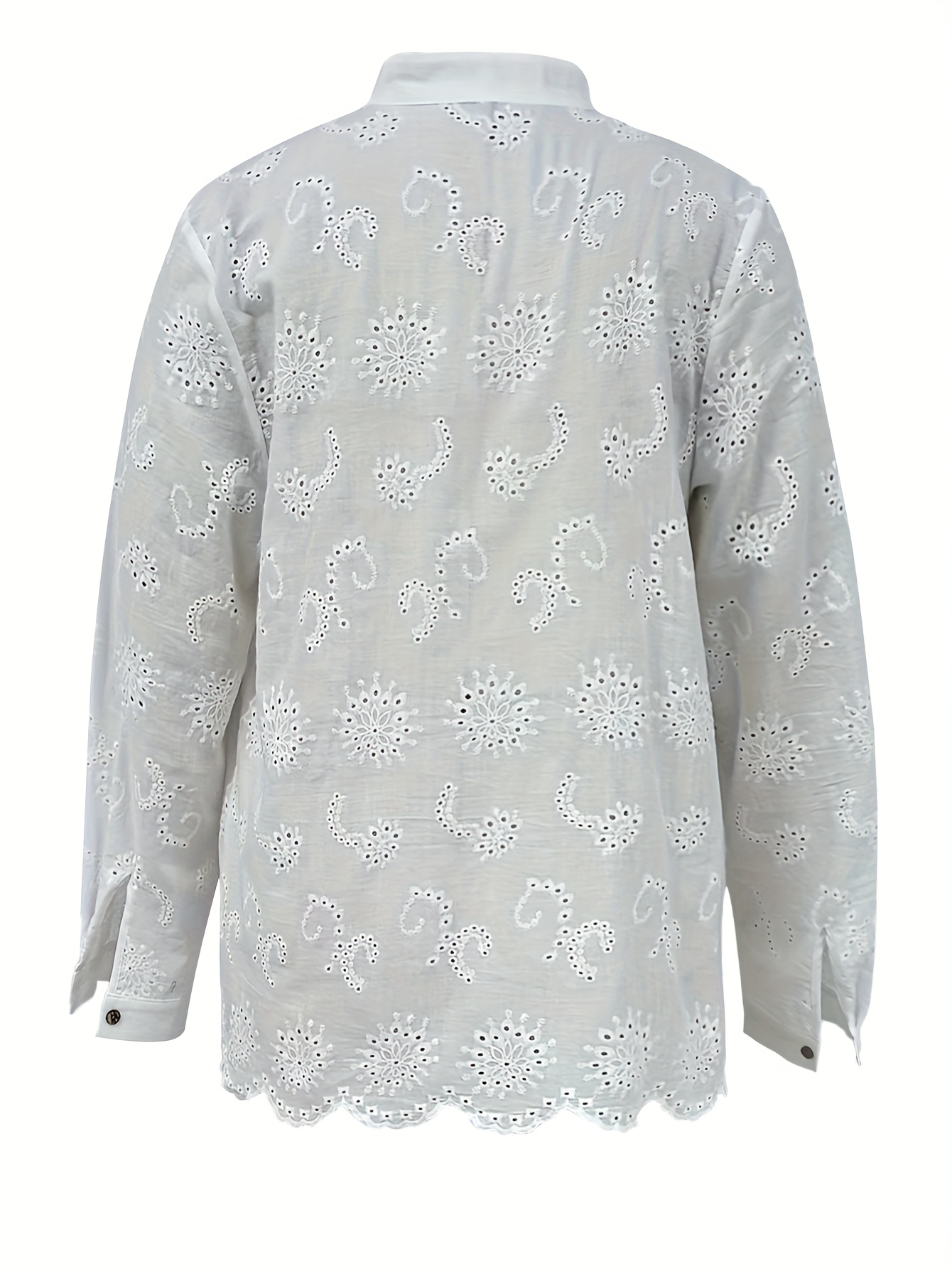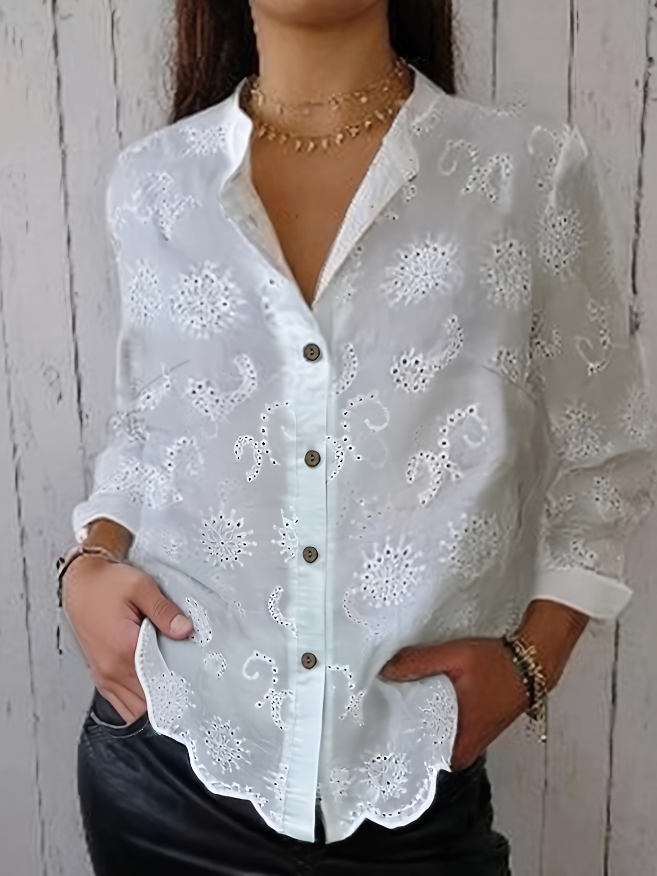 Women's Elegant Semi-Sheer Lace Blouse - Lightweight Breathable Long Sleeve Button-Up Shirt with Stand-Up Collar, Solid Color Machine Washable Plus Size Top for Spring Summer Casual & Formal Wear, Lace Shirt, Delicate Fabric Design